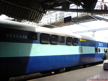 Apurva had uploaded a pic of a pantry car with large ventilation windows a few days back.....that was #89811. This is a similar pantry attached to the Konark, numbered #96809. 2006-06-29, Bizzy