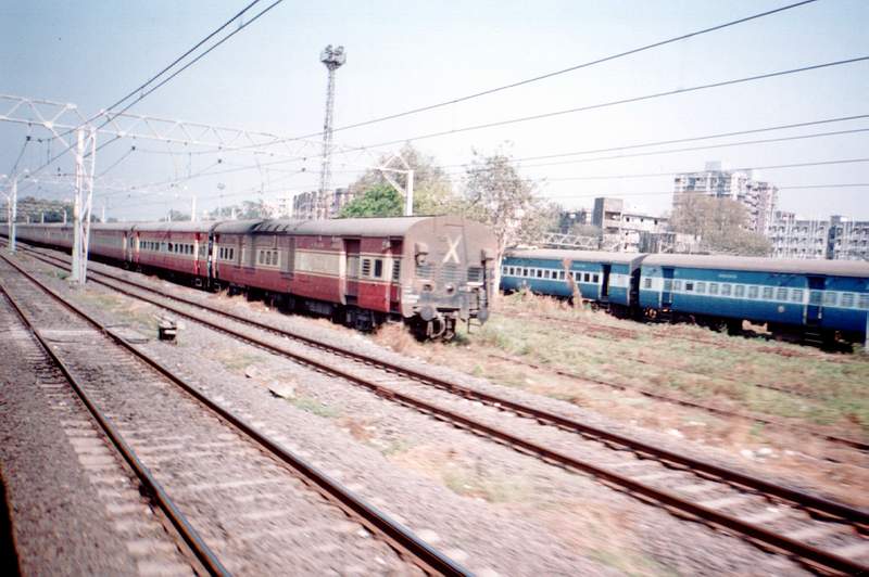 The old coaches of the 2951 Dn Mumbai Rajdhani Express parked in the Dadar yard. Dadar, 2003-12-15. By Vivek Manvi.