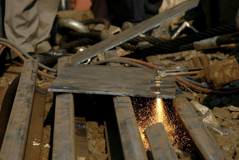 Making hole into a plate used for some purpose with the help of gas cutter.