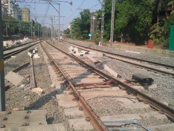 After removing old Track linkings and mapping LTT lines to new 5th 6th lines, the track equipments take some rest at Vidyavihar stn (Deep Soni)