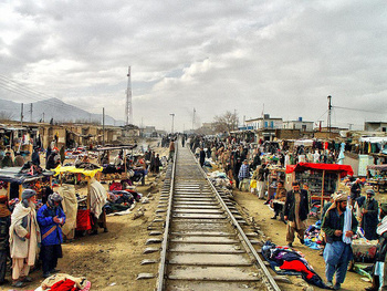 Inspection trolley at entrance to Khojak Tunnel. ()