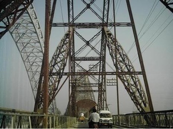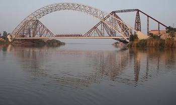 Images of the Lansdowne Bridge over the Indus at Sukkur, constructed in 1889. The bridge was a landmark of 19th century engineering, being the longest rigid girder bridge in the world at the time. Please see the article on this bridge by Owais Mughal.