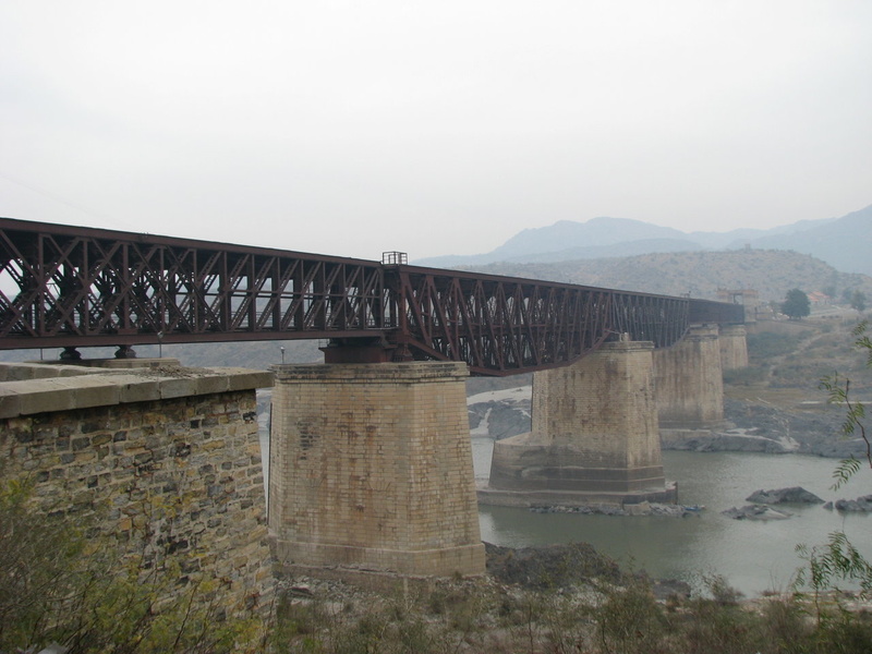 A magnificent view of the old Attock bridge from the NWFP side. Also seen is the station building of Attock Khurd in the Punjab province.