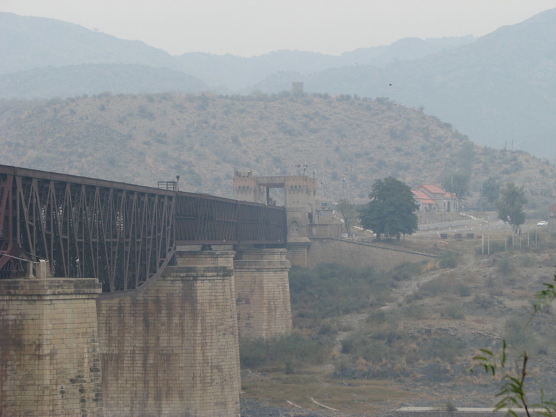 Hills, the old Attock bridge and Attock Khurd station as seen from the western or the NWFP side.