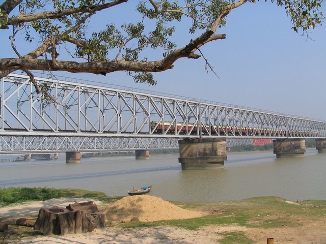 EMU over the Rupnarayan bridge. Kolaghat, Sep. 2005. Subhabrata Chattopadhyay.
