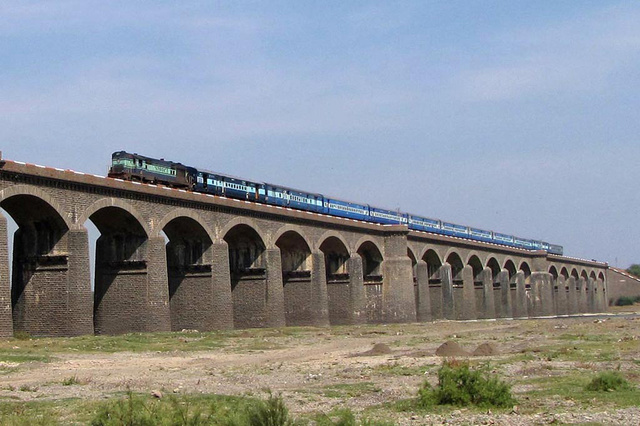 0516 Nanded-Daund passenger over the bridge, near Daund. 2009-01-19. (Lalam)