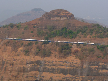Shortest among the Pune-Mumbai Intercity trains, Pragati Express dwarfed by Monkey Hill ()