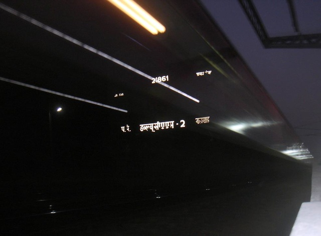 Night Attack: The August Kranti Rajdhani blasts past a deserted Umroli in the darkness, lighting up its vital statistics for us railfans!
