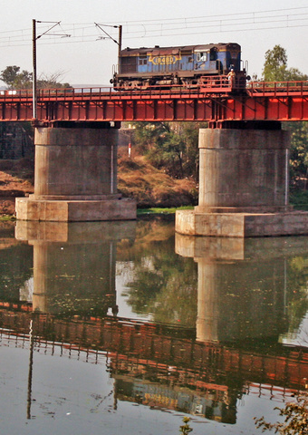 Kalyan's Old Lady 18480 needs to have her morning walk to keep herself fit. Here she takes a walk on the Godavari Bridge between Nasik & Odha - Feb 2009 ()