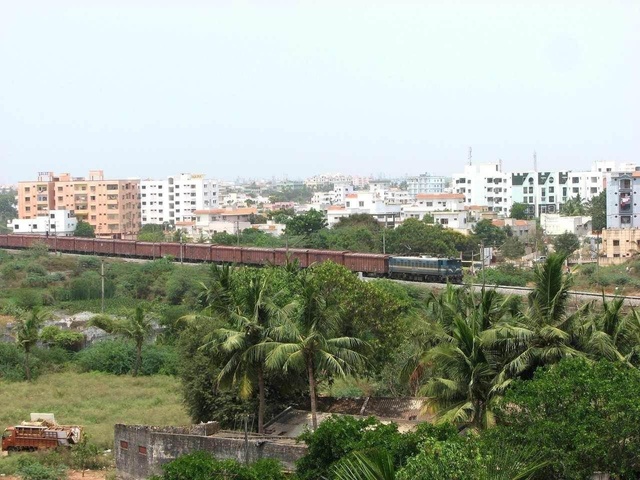 House Warming: A WAG 7 led freight train moves slowly towards Chennai. This is a scene from the balcony of my new apartment at Nellore, AP. Ranga Eunny 2008-4-30