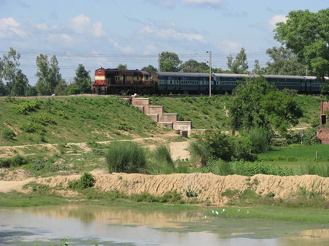MGS WDM-3A #18813R leading the 8103 ASR bound Jallianwala Bagh express tears the track apart at Jugaur. (Samar)