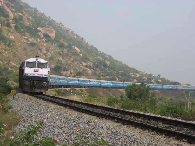 Suprise !!!! -- KJM-WDP-4-20043 heads the Prashanti Exp to SBC at MKL. The LP blew the Cab horns to warn me.Uploaded by Kunal Doddanavar.