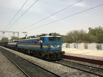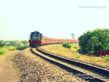 Bokaro Steel City WDM-2 duo comes chugging furiously with a Concor rake going towards Jharsuguda, while BNDM WDG-3A twins waits on the loop for line clearance. Location: Lapanga, Orissa. (Ujjawal Kashyap)