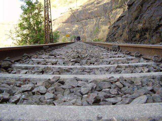 The line connecting two tunnels, going over a viaduct of 24.4M length. 3rd line in Bhore Ghats, 12 Feb 2005. By .asHIsh.