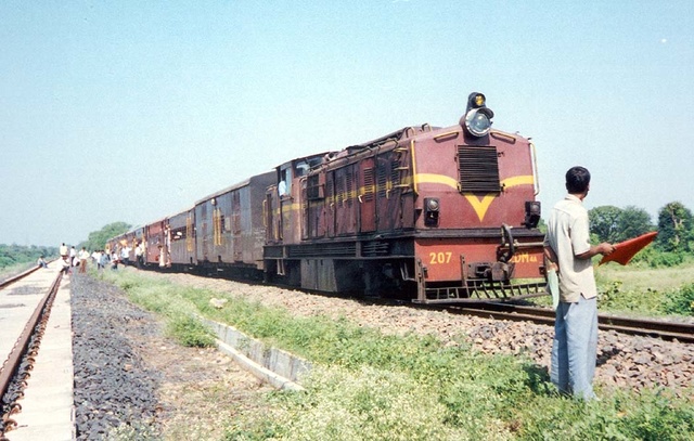 ZDM4A 207 from Motibagh heads towards Nagpur with a passenger. Just look at the crowd. This has to be one of the most crowded NG systems around!. Takli (Nagpur - Saoner), November 2003. By Alok Patel.