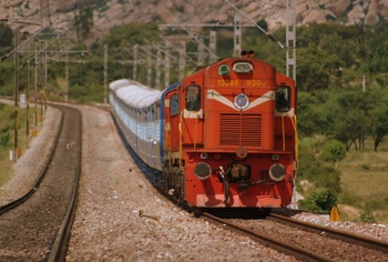The diamond of Jhansi! Spotted this WDG3A speeding towards Itarsi near Budni. The board in front displays in Hindi: "N-C Railways; Heera; Jhansi Division; The 100th Locomotive of Jhansi diesel shed". Picture by Vivek Mathur