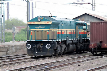 Bhagat ki kothi WDG4 12268 resting at Sawai Madhopur. The red band is a pleasing change to conventional livery of WDG/DP 4 locos, adopted by BGKT and TKD sheds. (anant singh)