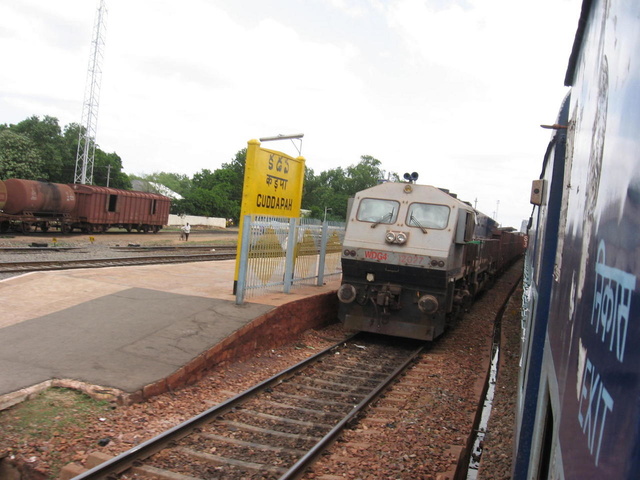 Freight at HX. You can see the cabman waving to us the green flag as we accelerate out of Cudappah. 2006-07-07 S.Ashwin