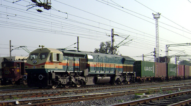GY WDG4 #12265 probably a GT46ACe /4500HP locomotive exits SNF with a CONCOR load. (R Viswa Chandra)