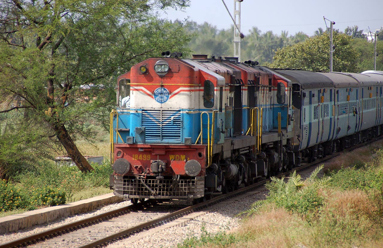 ET WDM-2 duo lead by 18499, heads the Karnataka Express near Hennur, Bangalore for an on time arrival at Bangalore.