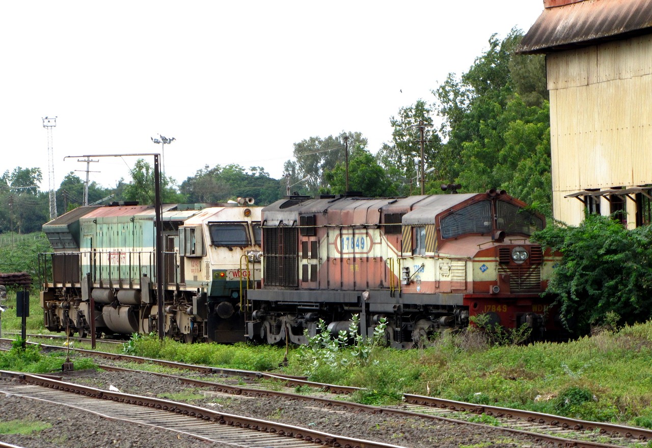 Pune Jumbo #17849 resting along with a WDG-4 at Miraj sidings. More photos from this trip in a Flickr set. (Aamod)