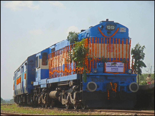WDM-3A # 16345R from SECR's Raipur shed getting dressed for his inaugral run with 1103 CWA-JHS Express at Chhindwara goods yard (Ujjawal Kashyap)