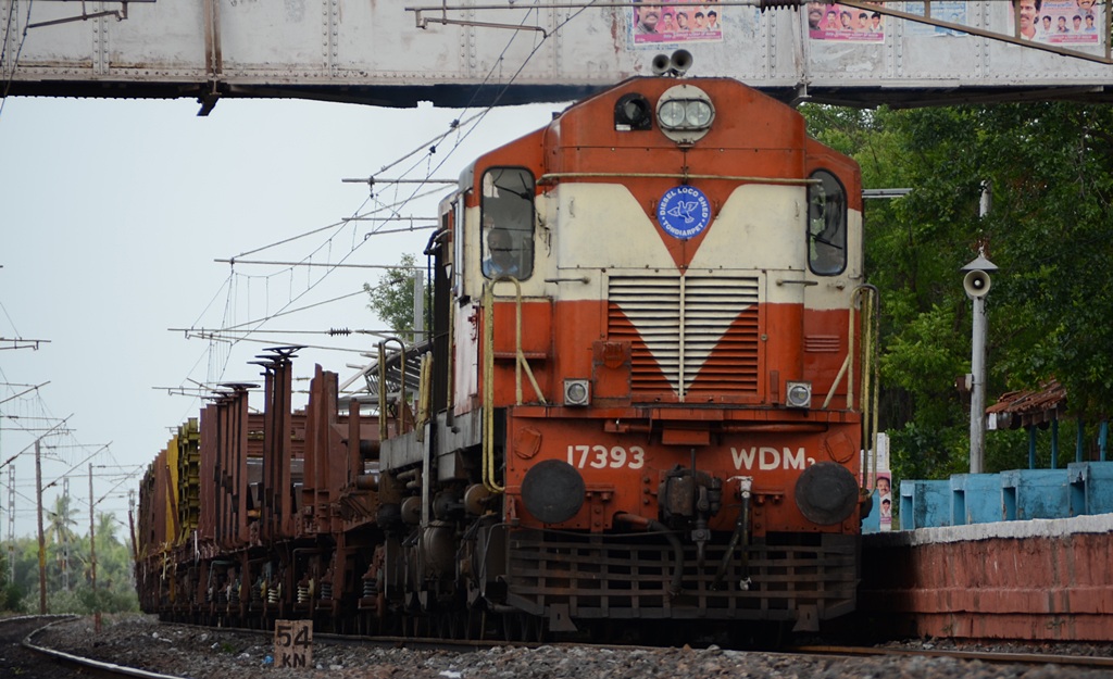 Tondiarpet WDM-2 17393 with a departmental rake at Manavur (MAS - AJJ section). (Naveen)