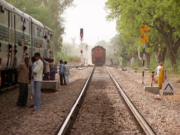 The Indore Jaipur Express hurtles towards me with the Vatwa WDG3A 13289 in charge. This is the shot taken just before the one I posted a couple of weeks ago. The station's name is Chauth Ka Barwara. Sawai Madhopur-Jaipur section