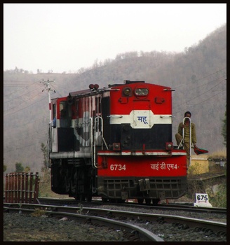Finally evening arrives , the sun sets as the ghat section on the Akola-Ratlam Meter Guage Section arrives. Here MHOW YDM-4 # 6734 is seen coming for her attachment ! (Chaitanya)