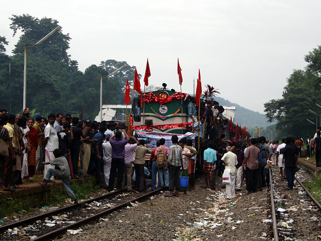 YDM-4 #6310 prepares to start with the last ever trip of train #744, from Punalur. The passenger rush on this train was so high, that many people (me included) had to return dejected. A couple of media persons said that there were passengers even on top of the coaches the previous evening. Curtains have been drawn on the 110-year old line. ()