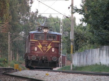 JHS WAG-5HB #24066 flies past Umroli with a container rake bound for JNPT. 30th December 2007. By Ranjeet Ramaswamy Iyer.