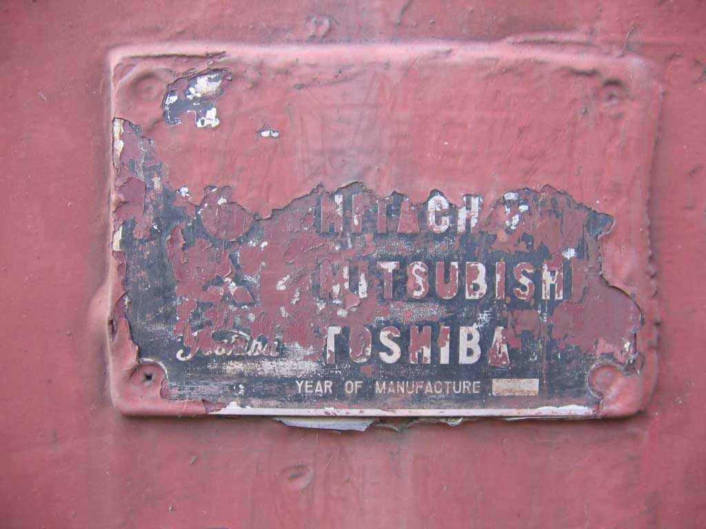 What I was searhing for - the "HMT" builders plate. Hitachi-Mitsubishi-Toshiba. I had to scratch the paint off. The remaining paint was just refusing o go