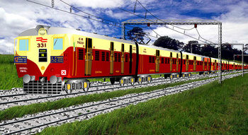 12 Car Train EMU from Kalwa Carshed. Illustrated, 31.jan.05. By By Subhash Rao.