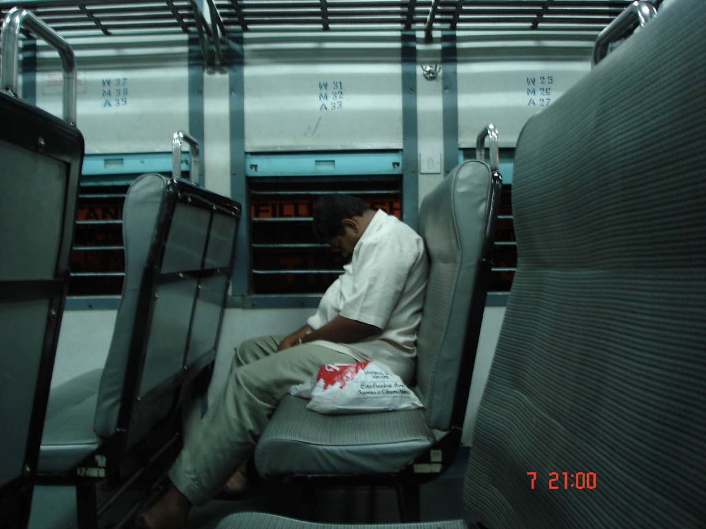 Railway men had to wake up this man who was sleping even half an hour after the train stopped. 2005-06-08. Jimmy Jose.