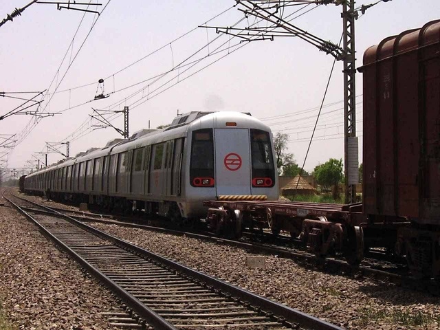 A DMRC rake trails behind a BCNA rake heading to NDLS. I think this is the same DMRC rake spotted by Colin in BYPL a few days ago. Asaoti.