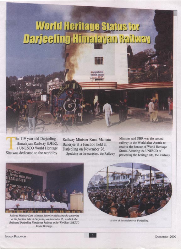 World Heritage Status for DHR, Page 1. By Uploaded By Jimmy Jose (jimmy@southernelectromag.com), From Private Collections Of Mr. Prakash, SM, Cochin Terminus.
