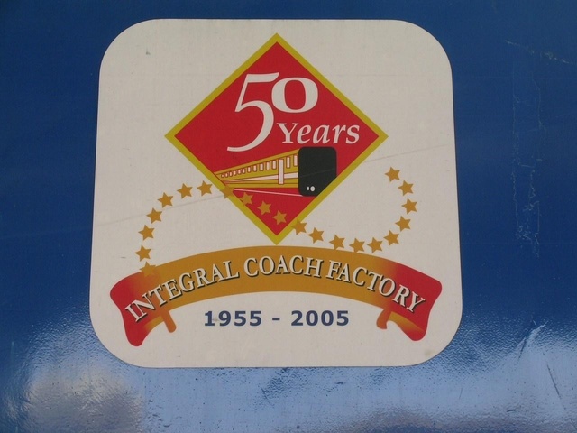Commemorative logo indicating 50 years of ICF, on one of the coaches of 7685/7686 KCG-SBC Express.