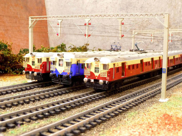 Mumbai DC EMU's with Motormen Coach No. 347 and 349 bound for Kalyan and AC-DC EMU wit Guard Coach No. 325C bound for Mumbai CST (Models Created by Subhash Rao, Dombivli) (Tushar Dhake)