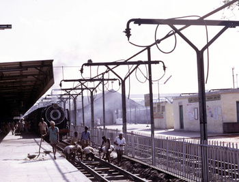 Happy Republic Day, 1983-2008!Specially decorated YP2212 departs Ahmadabad with a passenger, probably #42 Abu Road Fast Pass, on 1983-01-26.