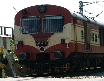 Another view of the DMU coach. Note the panel on the ceiling. There are flourescent lights on either side, and enough fans. The panel also has a PA system, and provisions for future air-conditioing. Shalimar, near Calcutta, 2005-04-30. Samit Roychoudhury.