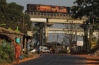 Cortalim: Variation of village and Mangalore Express, 2012-02-20 (Roni Kappel)