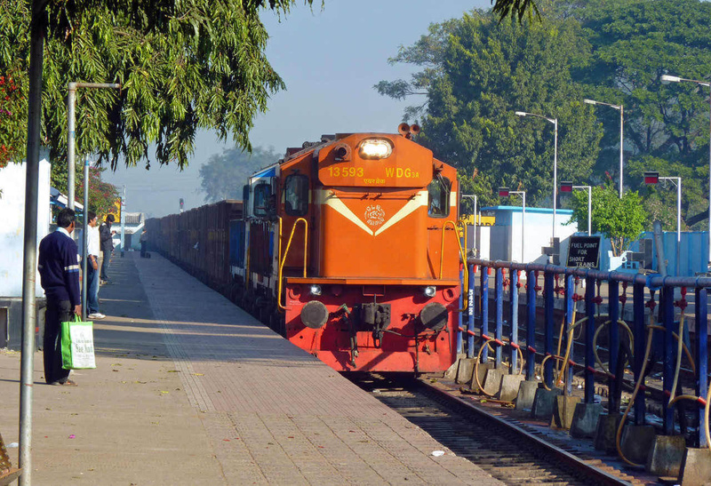 Just few minutes before the departure of our VSKP-R passenger, from the Titlagarh side appeared MU'ed Raipur WDG-3A's # 13593 + 13181 with an empty southbound BOXN rake (Ujjawal Kashyap)