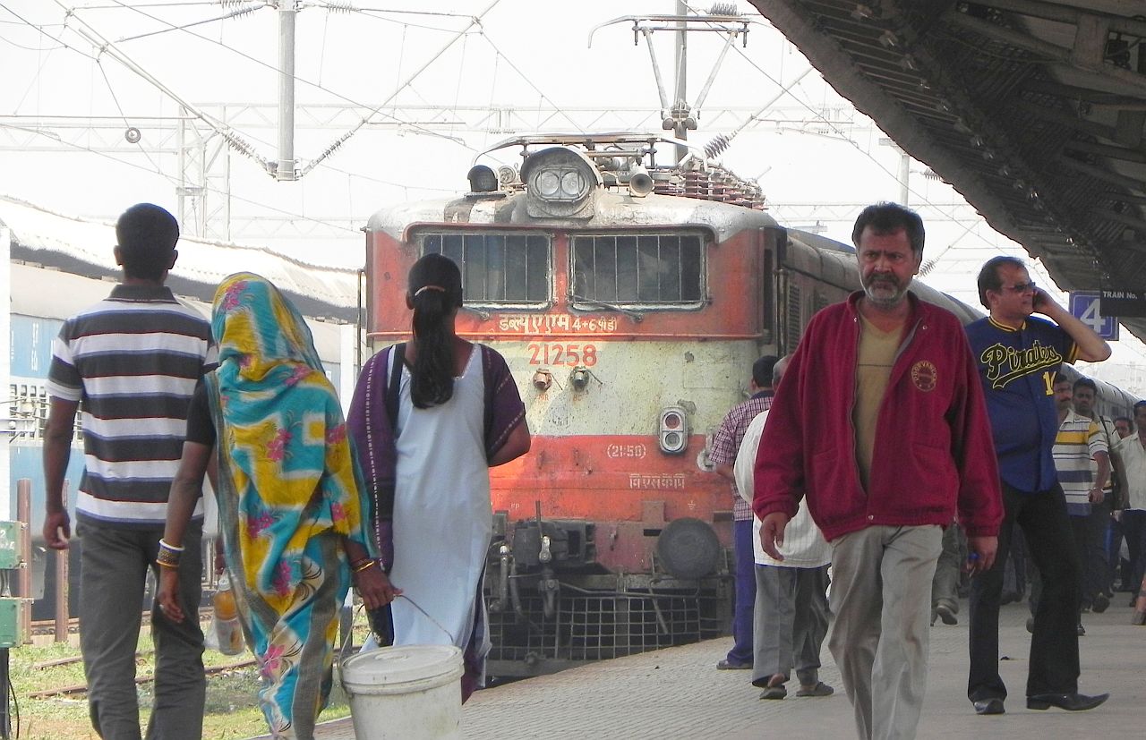 VSKP WAM-4 + 6PD #21258 arrive at Puri with Khurda-Puri-Angul-Puri passenger. 2011-02-06. (Krupa Ratnam)
