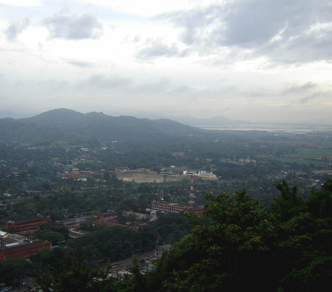 NFR hq viewed from Neelachal Hill atop which is the famous Kamakhya Temple.The eponymous station is just off-picture to the right. The mainline is discernible between the hq and the railway stadium. Most of the housing in view is for NFR staff.The distant water body is an ecologically fragile, teeming-with-birds wetland known as Deepor Beel. Not surprisingly,NFR wanted to lay the Goalpara line right through the middle of the beel but was eventually forced to shift it next to the distant hills thereby avoiding most of the wetlands.