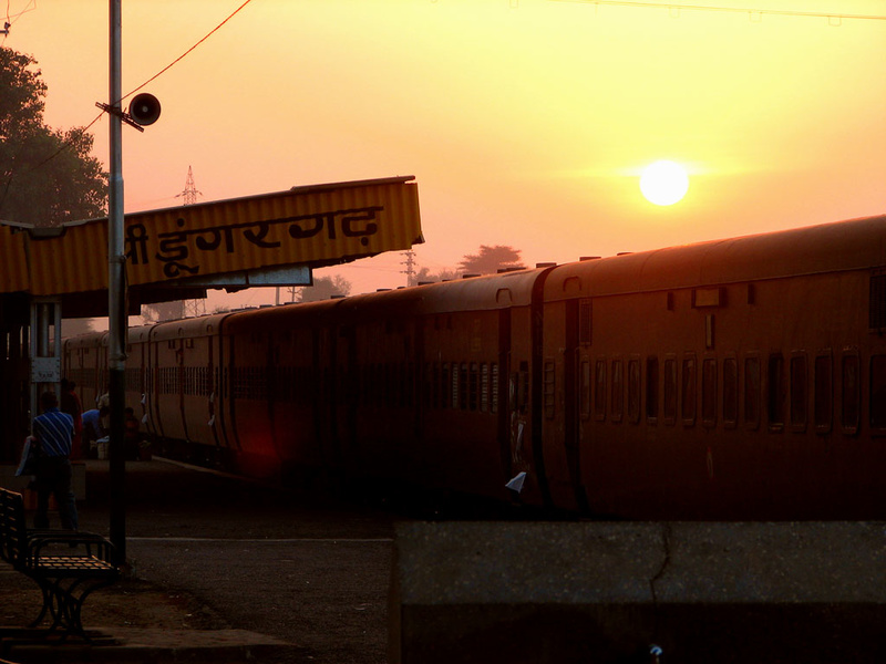 The sun rises as the Mail takes a breather at Shri Dungargarh Station. Pic by Shashanka Nanda