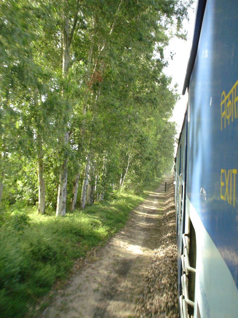 Endless rows of eucalyptus trees lined the track on both sides. Ferozepur - Bathinda Section, 2005-08-14. Shashanka Nanda.