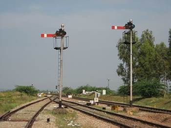 Salute! The semaphore lift its blocking hand upwards towards the heavens giving clearance to the passenger set to depart towards Chikjajur. Hosadurga Road. 2010-01-02. (Kunal Doddanavar)