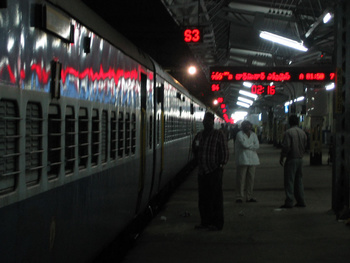 "Good Morning!" It was actually 0216 hours :-) KK and PV were probably the only ones awake when 2759 pulled into BZA ! After much persuation from PV, KK clicked a fine low-light, flashless, handheld shot of the "colourful" platform