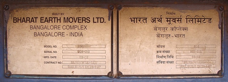 Manufacturer plate with details on the rail-bus (#30019 SCR). 2009-12-27. (Krupa Ratnam)