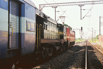 A fine shot of 6127 Kudal Express ripping along Kolavai Lake, approaching Chengalpattu. We (103 MS-VM passenger) were to give way to 6127. March 2004. By PoochiVenkat.
